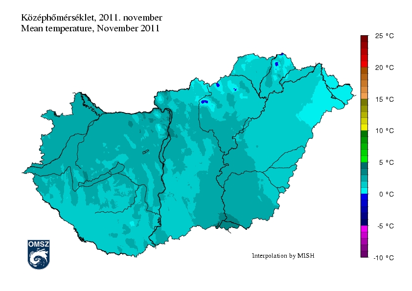 Hazánkban szinte mindenütt alacsonyabb volt az átlaghőmérséklet a sokévi átlagnál, látványosabb kivételt csak a Bükk képviselt, de az értékek itt is +0,5 °C alatt maradtak. Az anomália javarészt -1 és -3 °C között változott, de kis területen az északkeleti és a délnyugati országrészben abszolút értékben ennél nagyobb negatív különbségek is előfordultak.