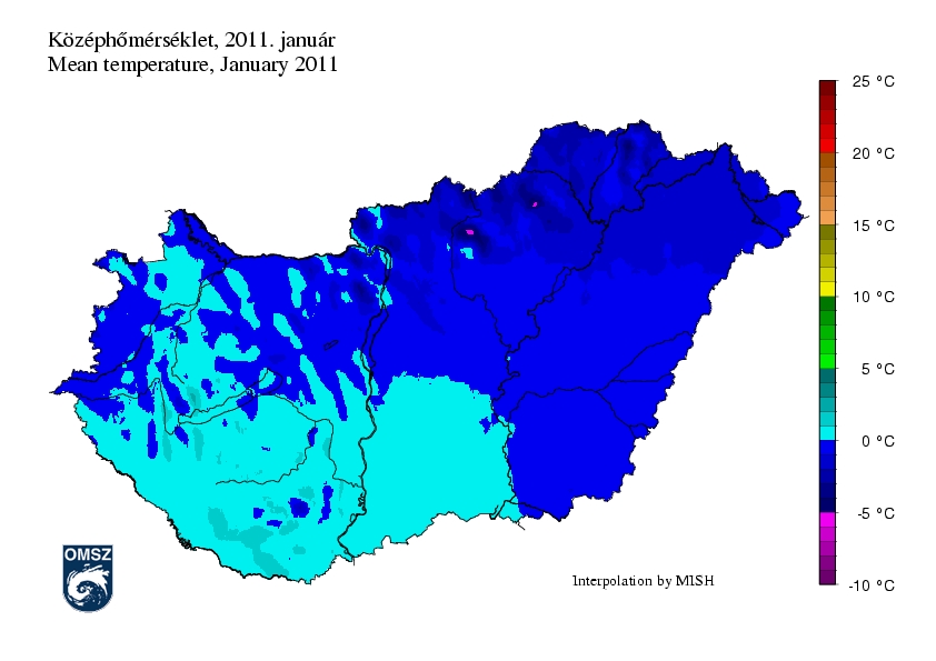 Az ország túlnyomó részén az átlagosnál 1 °C-kal vagy annál is enyhébb volt az idei január. Főként a délnyugati országrészben a hőmérsékleti anomália a +2 °C-ot is megközelítette. Jórészt csak Nógrád megyében uralkodott alacsonyabb hőmérséklet, de az értékek itt is csak 0,5 °C-kal maradtak a sokéves átlag alatt.