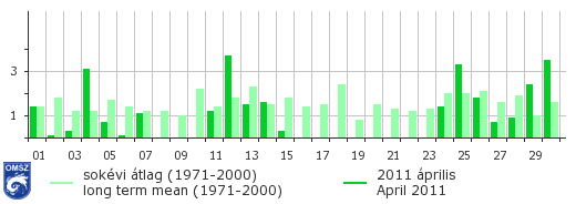 Napi csapadékösszegek és a sokévi átlagok országos átlagban (mm)