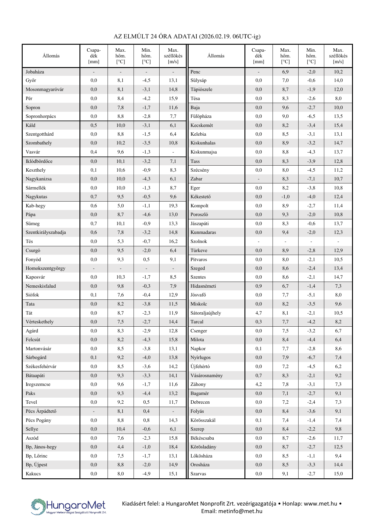 HungaroMet: 2026. február 19. 12:40 (11:40  UTC)  [pd4p]