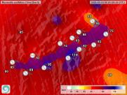 Az elmúlt napokban a térségünk időjárását is meghatározó ciklon keletre mozdulásával sokfelé északiasra fordult a légmozgás, és a Dunántúlon több helyen viharossá fokozódott az északi, északnyugati szél. Március 29-én a nap első felében három mérőállomásunkon is 30 m/s (108 km/h) fölötti széllökéseket regisztráltak a műszereink, így megdőlt a 2012-ben ezen a napon, Kab-hegyen mért 29,3 m/s-os (105,5 km/h) szélrekord. A legmagasabb széllökést Balatonőszödön mértük, mely 33,1 m/s (119,2 km/h) volt, ezt követte Kab-hegy 32,0 m/s-mal (115,2 km/h) s végül Öskü következett 30,8 m/s-mal (110,9 km/h).